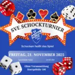 SVE-SchockturnierFreitag, 21. November 202519:00 UhrSportheim EllenWir laden wieder ein zum SVE-Schockturnier im Sportheim Ellen am 21. November 2025 ab 19:00 Uhr.Es ...